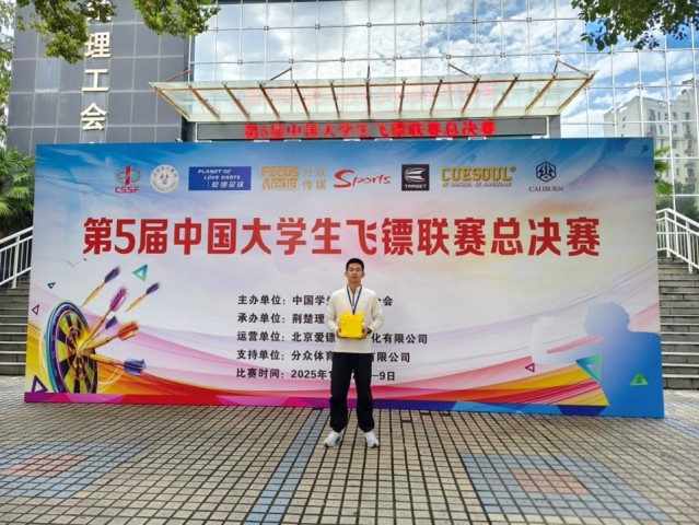 我校高度重视此次赛事,组建参赛团队——邀请体育学院赵松老师担任领队,兼任教练员,康永强老师作为指导老师,大同大学飞镖协会选派闫家铖参加比赛。比赛期间,我校选手顶住全国赛场的竞争压力,凭借扎实的运动素养与稳定的竞技状态,斩获个人、团体及教练领域多项荣誉。
