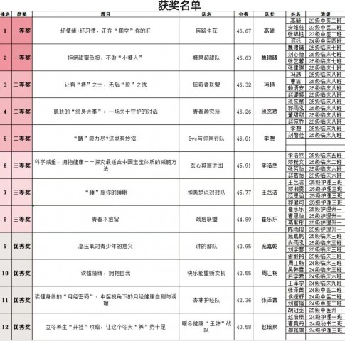 经过激烈角逐,活动评选出一等奖2名、二等奖3名、三等奖3名及优秀奖4名。获奖团队凭借扎实的专业内容、生动的宣讲形式脱颖而出,成为校园健康科普的标杆。