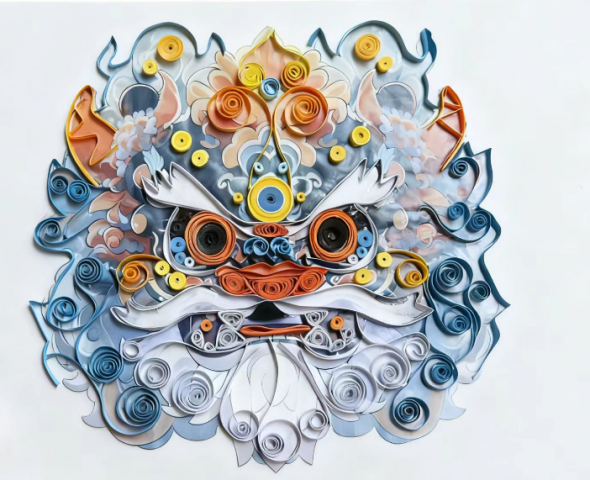 一等奖作品:《衍韵龙章》由24会计一班的马怡凡、祁崔熙、孙嘉萌创作,作者以废旧彩纸为材料,通过卷曲、层叠等技法,塑造出醒狮的立体造型。作品融合了传统醒狮文化与环保理念,展现了传统与环保的创意结合。