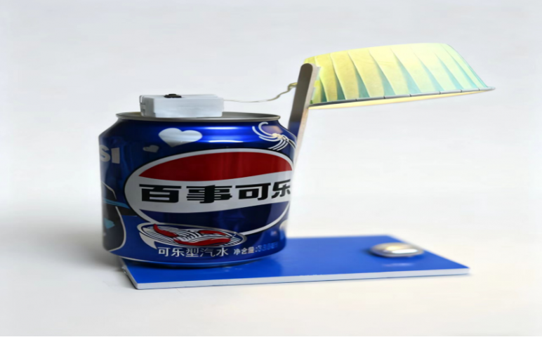 三等奖作品:《可乐罐的焕新灯》由24会计一班张诗琦、赵锦英、张雪、孙雪丽、杨佳怡创作,这件作品以废弃可乐罐为主体,搭配灯带制作成小台灯,实现了照明功能。以创意的设计增加了作品的趣味性,传递了“变废为用”的环保理念。