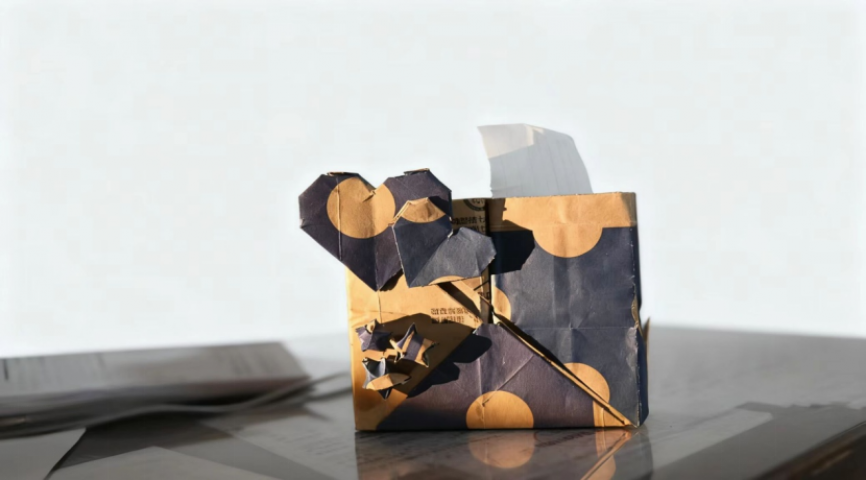 三等奖作品:《循旧袋 焕新筒》由24工商一班陆雯雯、刘梦洁,刘鑫怡创作,这件作品以废弃牛皮纸袋为材料,通过裁剪、拼接制作成笔筒造型。实现了材料的再利用,又以可爱的造型增加了作品的趣味性,传递了环保与创意的结合。