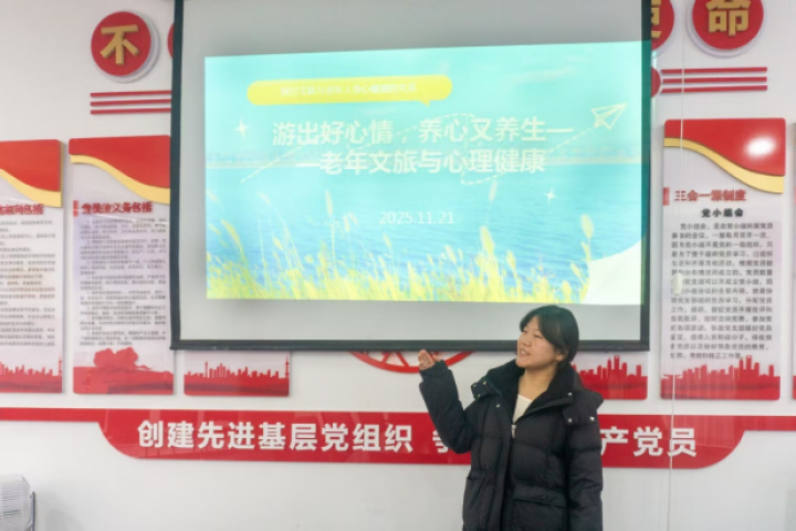 活动中,志愿者围绕“数字文旅”“心理健康”与“社交拓展”三个方向进行了内容分享。在《带上手机去旅行:数字文旅,让银发生活更精彩》部分,介绍了如何利用智能手机完成出行规划、景区导览与文化体验,提升出行便利性;《游出好心情,养心又养生》从身心健康角度出发,阐述了文旅活动对情绪调节与身体锻炼的积极意义;《银发游侠团:结交新朋友,发现新自我》则鼓励参与者通过共同兴趣建立社交联系,拓展生活圈层。