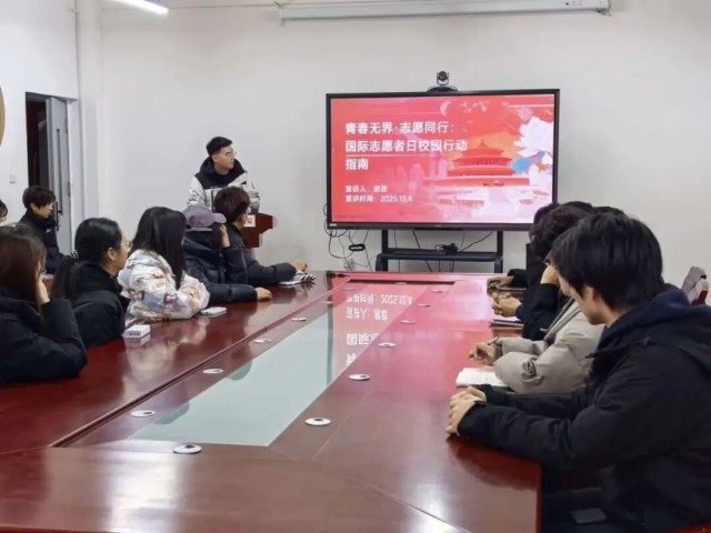 2025年12月4日晚七点,计算机与网络工程学院于本真楼B205会议室开展“青春无界·志愿同行”国际志愿者日校园行动主题宣讲,学生会组织部部长席政担任主讲人,25级各班团干参与此次活动。
