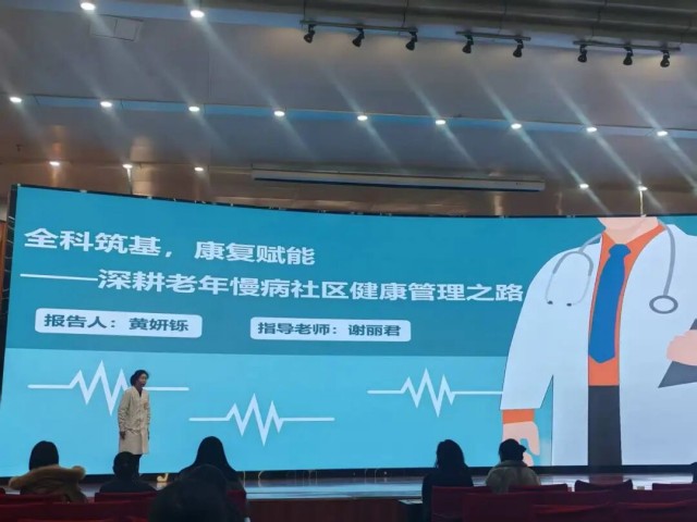 黄妍铄在本次大赛的成长赛道中,凭借其题为《全科筑基,康复赋能——深耕老年慢病社区健康管理之路》的职业生涯规划报告脱颖而出。她的规划立足于国家"健康中国"战略与人口老龄化社会背景,紧密结合临床医学专业特色,生动展现了将个人成长融入基层医疗卫生事业的远大抱负与务实思考。在报告中,她深情地阐述:"青春之光当照亮最需要温暖的角落,医者仁心要在最贴近土地的地方生根发芽。"这番话语充分表达了她立志运用所学医学知识与人文温度,投身社区老年慢病健康管理,守护银龄健康,提升居民生命质量的坚定决心。其规划内容充实、路径清晰、情怀真挚,充分彰显了新时代医学生的社会责任感与职业使命感。