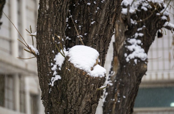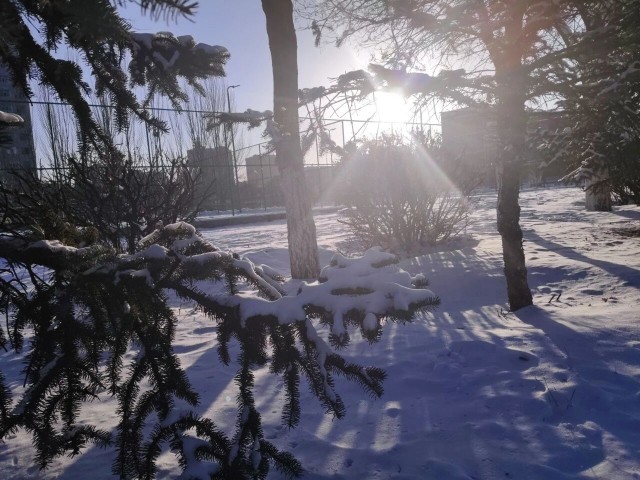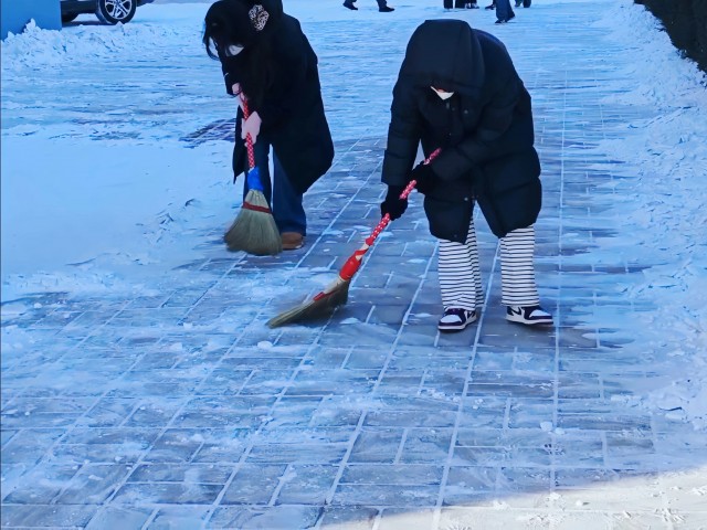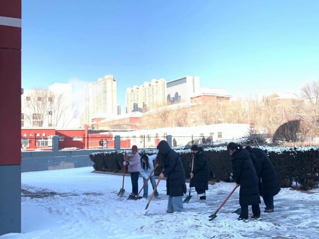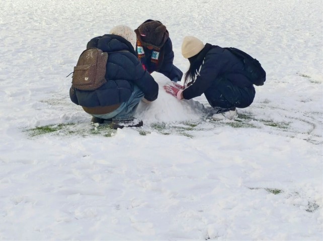 下课铃响,同学们三三两两走出教室,把凝结了霜雪的地面咯吱作响,笑声随着寒风传得很远。有人伸手接住飘落的雪花,有人围着操场慢跑取暖,还有人坐在长椅上晒着太阳聊天。