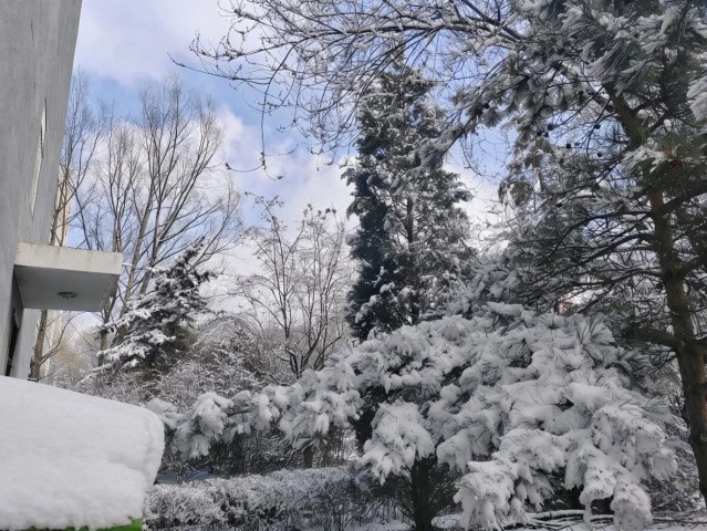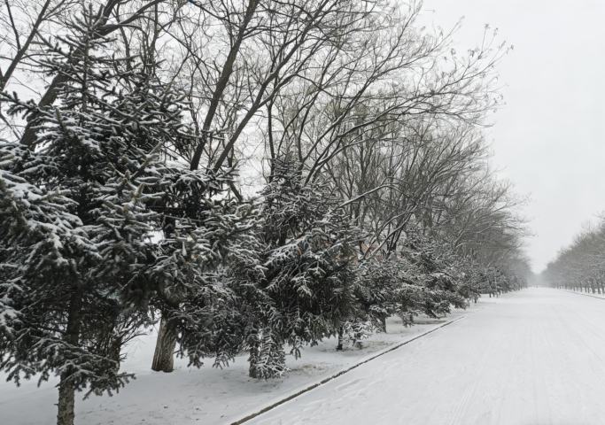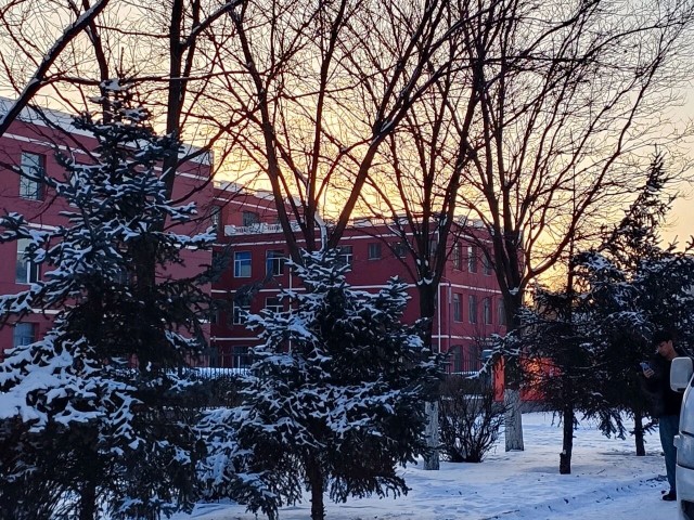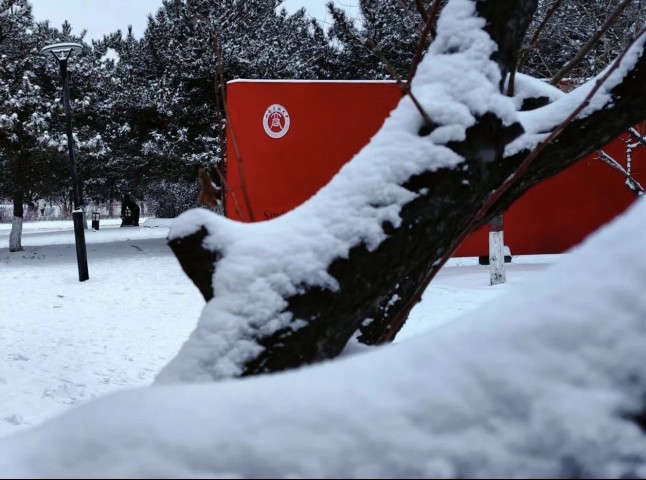 这一方校园的冬日,既有天地辽阔的静谧,也有少年意气的鲜活。教学楼的墙面映着淡金色的暖阳,操场跑道覆着薄霜,路旁的松柏凝着细碎的白,天地间干净又开阔。