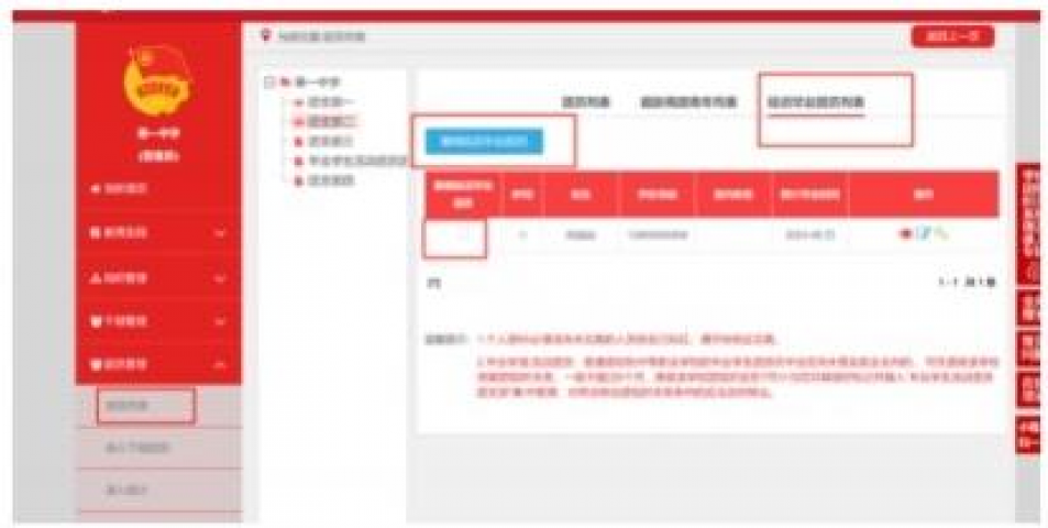 1.1.1管理员登录系统进入管理中心,点击“组织管理—组织列表”菜单,进入组织列表界面(小程序点击“团员管理一毕业时间标记”图标),