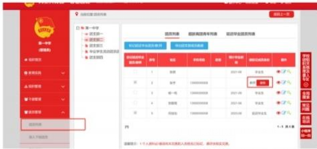 在开展毕业学生团员组织关系转接工作前,学校领域团支部(含每年新创建的学校学生团支部)必须完成团员毕业时间标记工作。团组织管理员(团支部管理员除外)都有权限标记和修改班级团支部团员毕业时间,具体操作步骤如下。