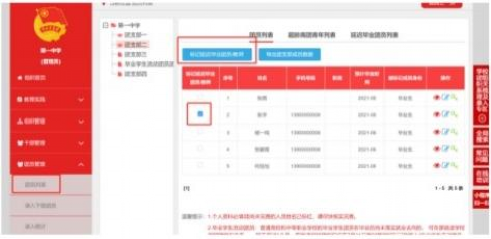 (1)确认并标记团支部团员毕业时间(若已标记则略过)。