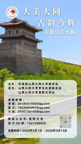 为了深度挖掘大同的精神内涵,展现大同从“煤都”向“文化古都、清凉夏都、美食之都”转型的时代风貌,特举办本次“大美大同·古韵今辉”主题征文活动。旨在通过文学的视角,书写大同的历史厚度、精神高度与时代温度。