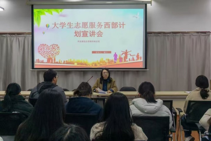 为深入解读国家基层服务项目政策内涵,引导青年学子树立服务基层、奉献家国的职业理想,3月19日晚,文学院在致知楼103教室举办大学生志愿服务西部计划专题宣讲会,本次宣讲会线上线下同步进行,学院团委书记冀敏担任主讲。